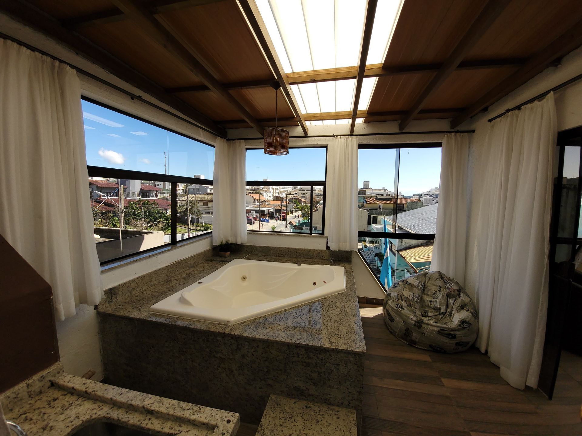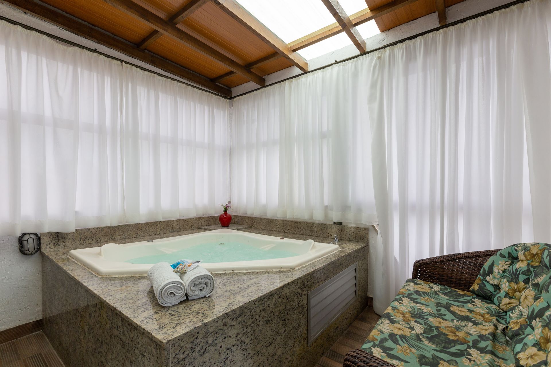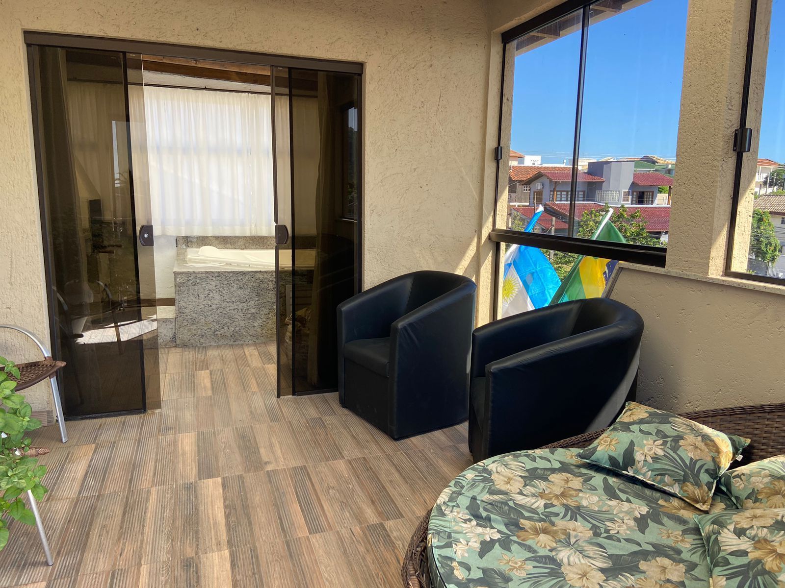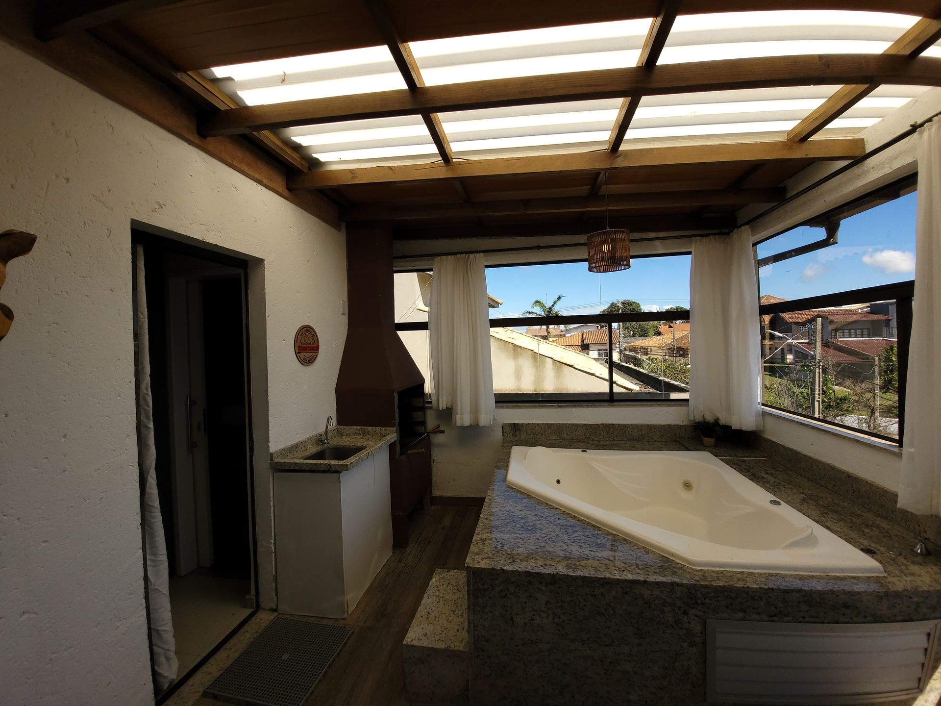Varanda exclusiva com hidromassagem e churrasqueira.