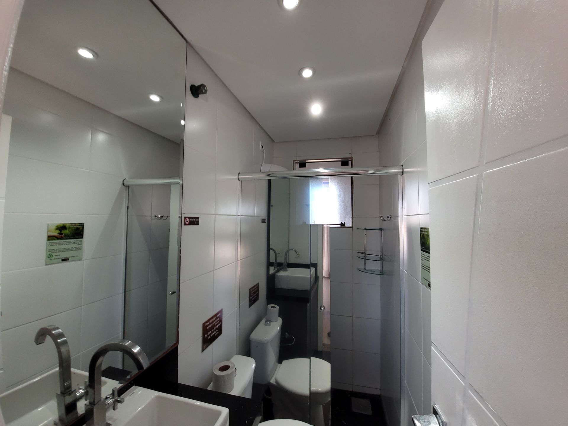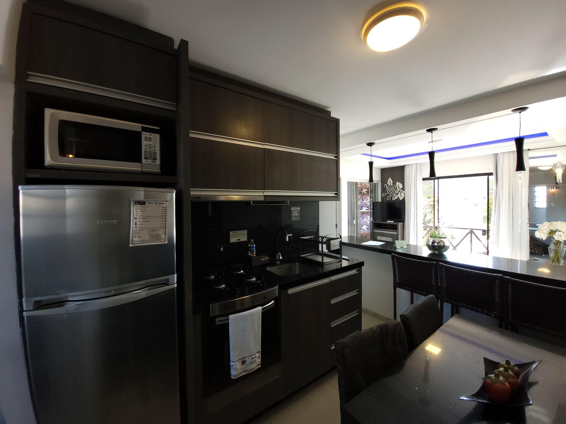 O apto possui sala, cozinha completa, 2 banheiros (1 social e 1 suíte).